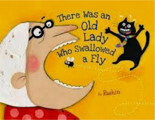 Another exercise in recursion would be the English nursery rhyme about an old lady who swallows a fly, which, as the song’s chorus repeats ‘wriggled and jiggled and tickled inside her’. The unfortunate woman decides to swallow a spider in order to catch the fly, and then successively, a bird to catch the spider, a cat to catch the bird, a dog to catch the cat, and so on in a theoretically infinite number of permutations.